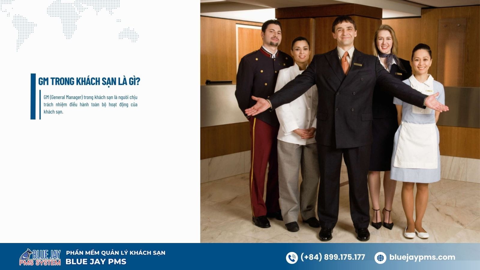Vậy GM trong khách sạn là gì, nhiệm vụ của vị trí này ra sao và những chỉ số nào một General Manager cần theo dõi để vận hành khách sạn hiệu quả? Bài viết dưới đây, Blue Jay PMS sẽ giúp bạn hiểu rõ toàn diện về vai trò của GM trong ngành khách sạn hiện đại.