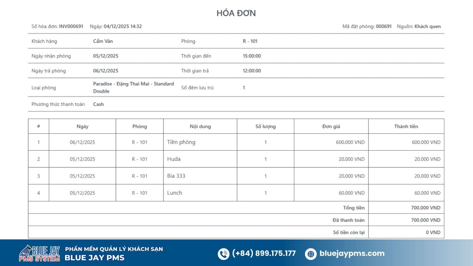 - Tránh sai sót khi cộng trừ thủ công, hạn chế khiếu nại sau lưu trú.