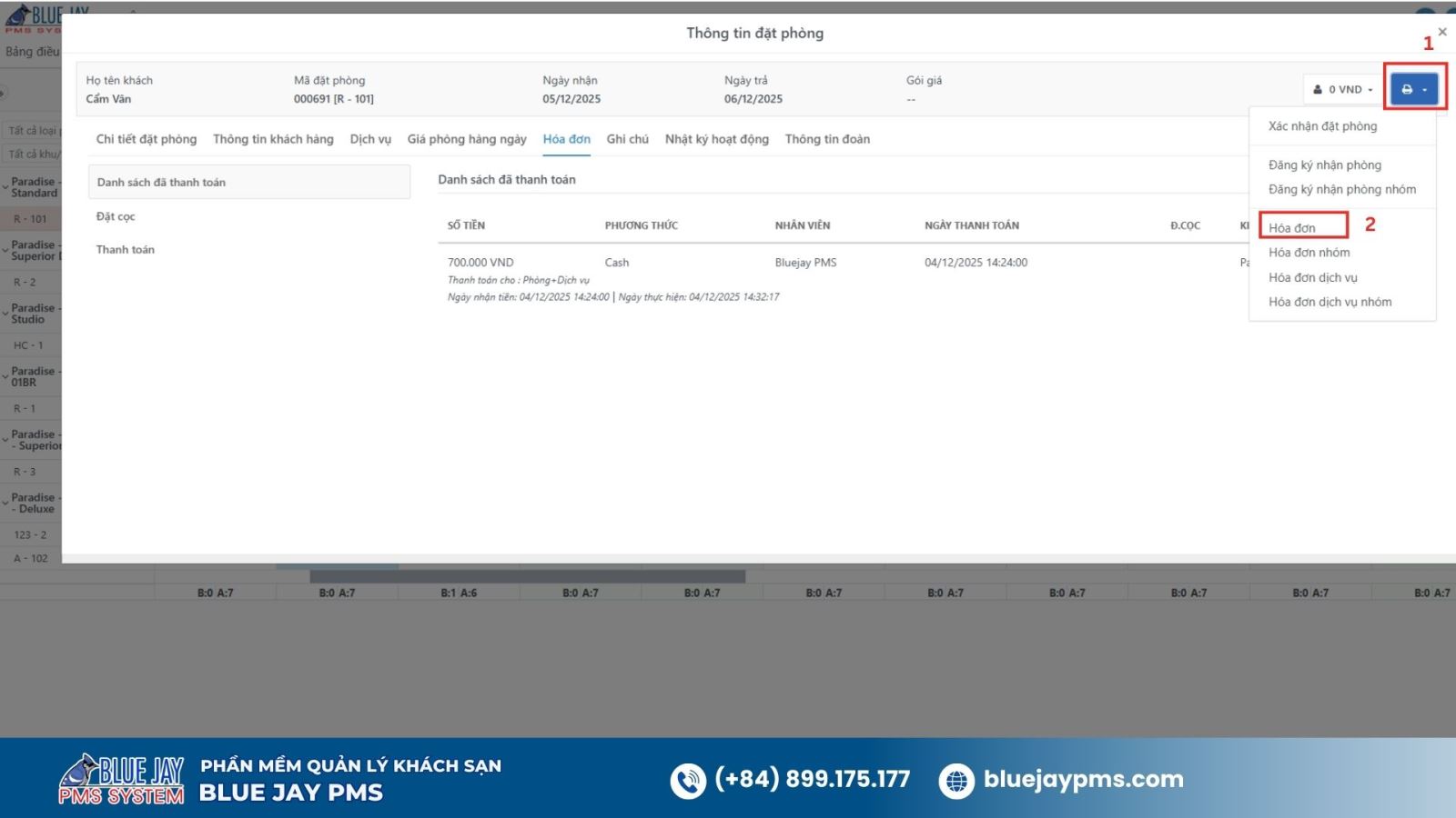 Hướng dẫn khách sạn sử dụng tính năng Folio trên Blue Jay PMS