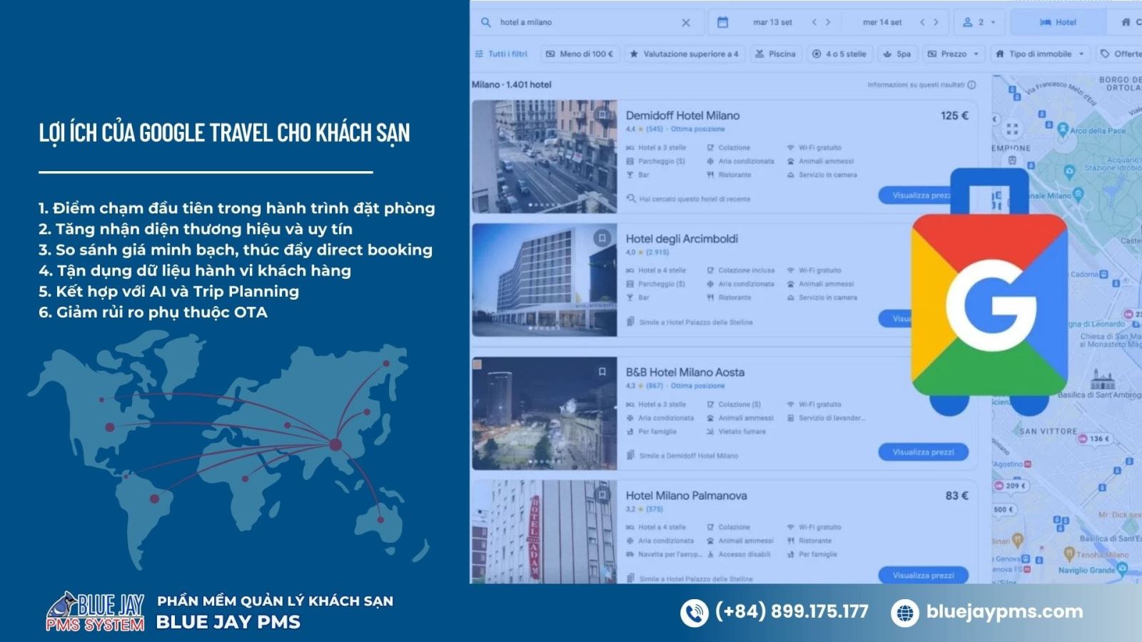 Xuất hiện trực tiếp trên Google Travel giúp khách sạn kiểm soát hành trình khách, tăng booking trực tiếp và giảm chi phí hoa hồng, đồng thời mở rộng thị phần mà không phụ thuộc hoàn toàn vào OTA.